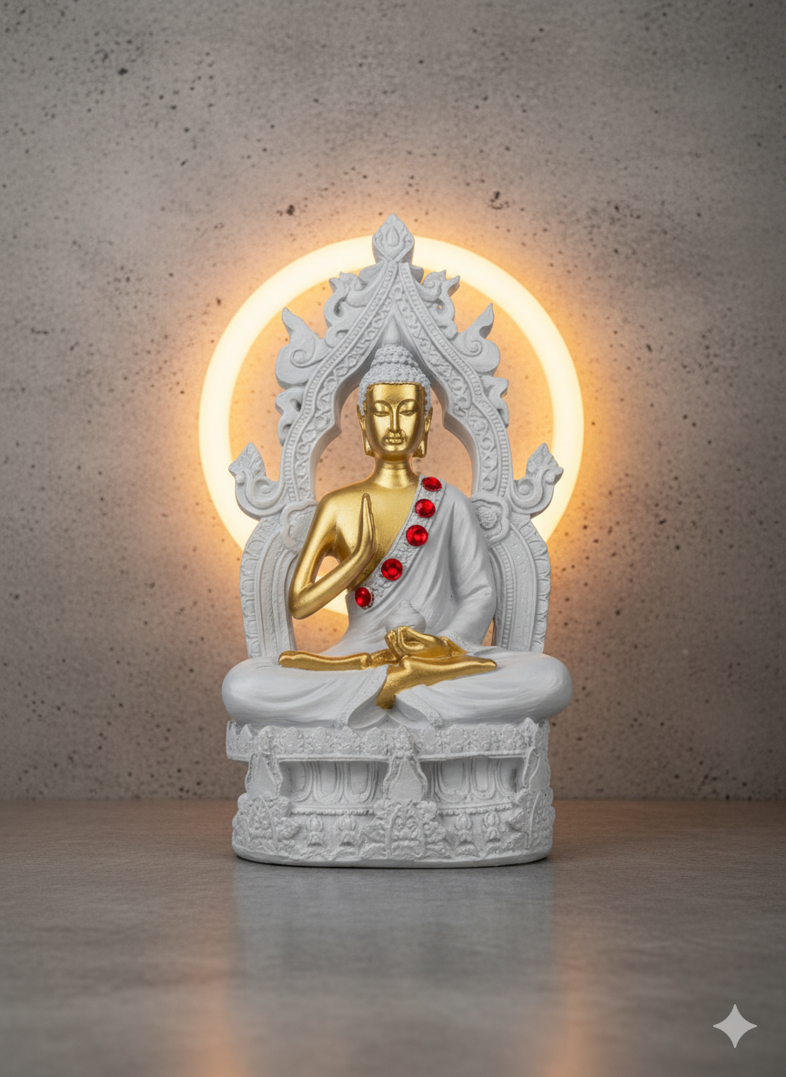 Absolutely stunning piece! The golden finish with the white base gives it such a divine and calming look. It instantly brings a sense of peace to my living room. Truly a masterpiece!