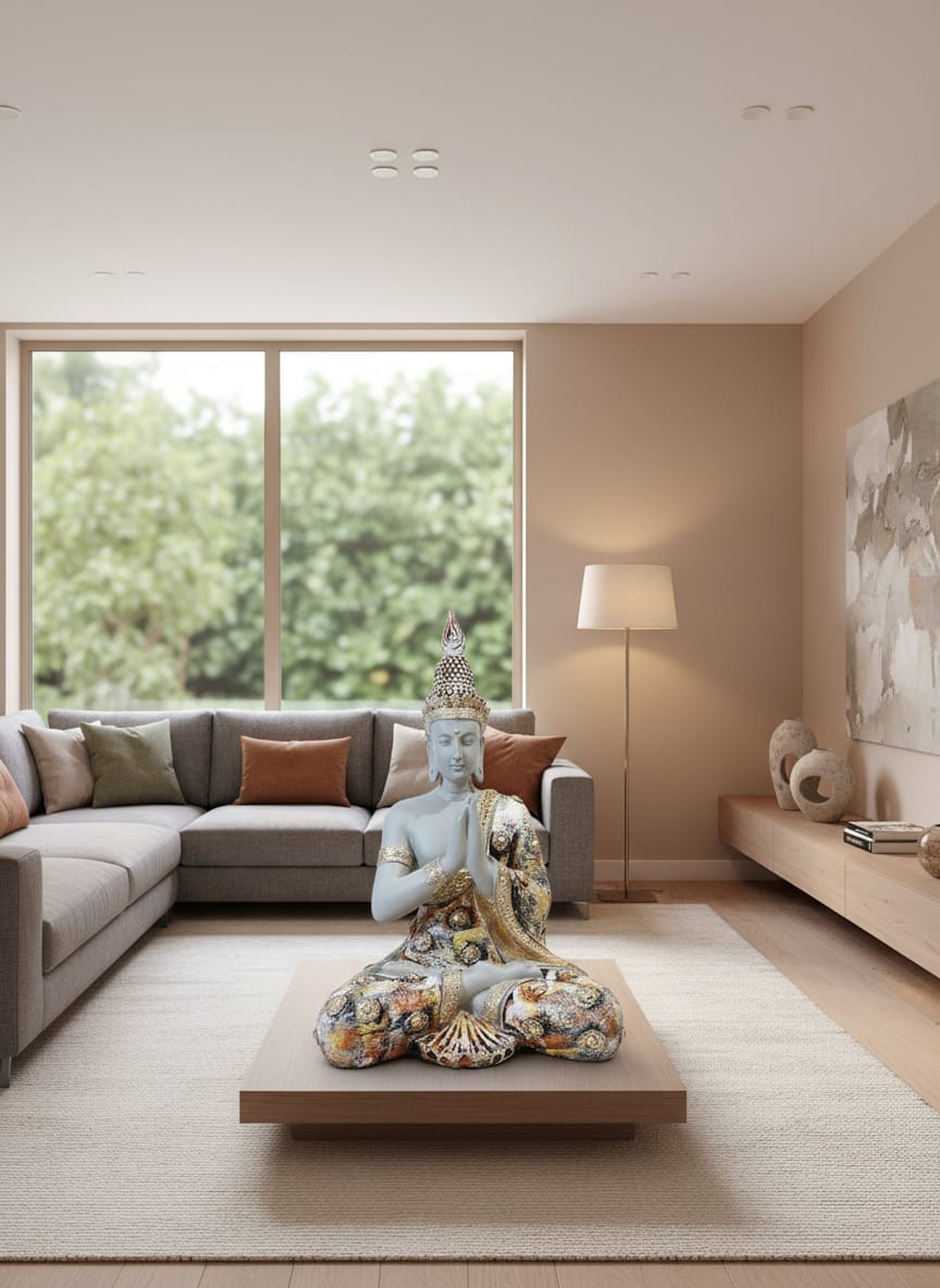 Embrace tranquility and spiritual elegance with this uniquely crafted Crowned Buddha Statue, depicted in the revered Anjali Mudra (Namaskara Mudra), the gesture of respect, devotion, and greeting. This exquisite piece serves as a beautiful focal point, inviting peace and positive energy into any space.