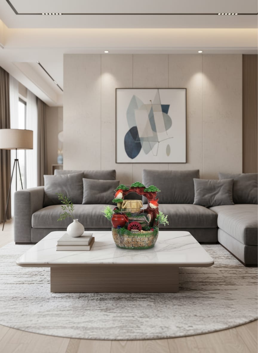 Bring a delightful sense of tranquility and a touch of rustic charm to your indoor space with this elegant Tabletop Water Fountain. Featuring a charming figure holding a pitcher from which water gently cascades, this fountain creates a soothing ambiance with the relaxing sound of flowing water.